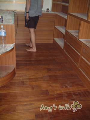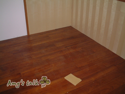 今天最大進展就是房間木頭地板裝好了。原先房間是要裝超耐磨地板,可是老公喜歡實木的質感,所以換成柚木,老公下午就先去看,吼~讓我也無心上班。可我還是識大體等到下班、上完跳舞課才過去。裝了木頭地板更有家的感覺,但我也頗擔心,還有許多工程沒有完成,木頭地板是否可以好好受到保護^^。