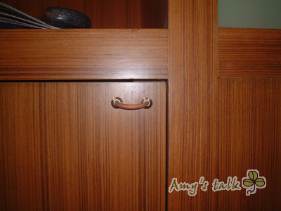 ,雖然他考慮到孩子碰撞問題而選一個皮繩材質,可是我真的很不喜歡,唉!這下子要換掉也麻煩,裝好的櫃子抽屜都已經打兩個洞,可以選擇的把手樣式因此受限很多,不過我不管,一定要換到我喜歡才OK!