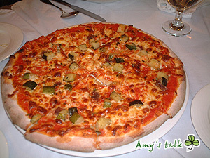 。至於我的鯷魚角瓜Pizza送來讓大家都吃了一驚,降子大一個,還好剛剛我沒有也再點一份麵,Pizza是我愛吃的薄皮,可惜鯷魚好鹹,也有點腥