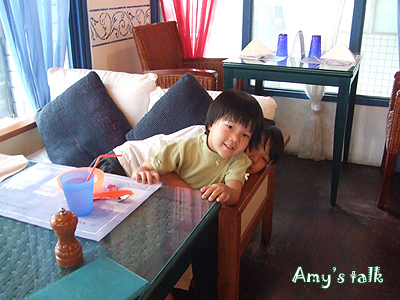 二樓臨窗這排座位的椅子都很舒服,瞧小若舒服到半躺,還調皮地裝睡起來。