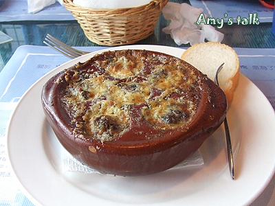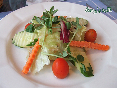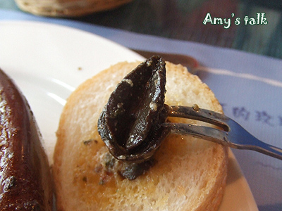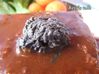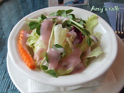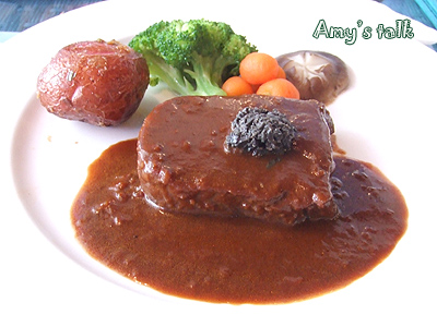 (這道餐特價才580,愛米實在想太多)。配菜中的一整顆馬鈴薯,外皮有點焦脆的口感,馬鈴薯泥綿密細緻,我只吃一口,其他全進了小婕肚裡。