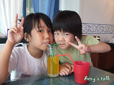 這杯果汁讓小婕回味無窮,可是我連一口都沒分到,兩姊妹一起分享著喝,即便小若喝完被酸到的表情好好笑,她還是一口接一口跟姊姊搶呢!