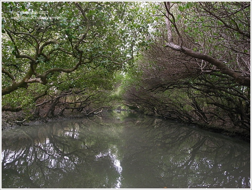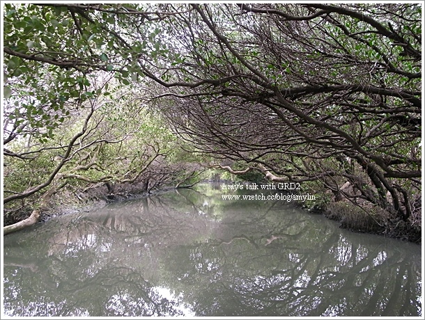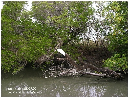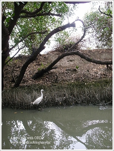 這段台灣唯一的水上隧道,除了可以觀賞四種紅樹林外,枝頭上不時可見白鷺鷥,沙地上還有招潮蟹、彈塗魚,據說這裡的招潮蟹種類有10種,是全台灣數量最多的地區。可惜這趟我們無緣見到招潮蟹、彈塗魚,下次一定還有機會的。