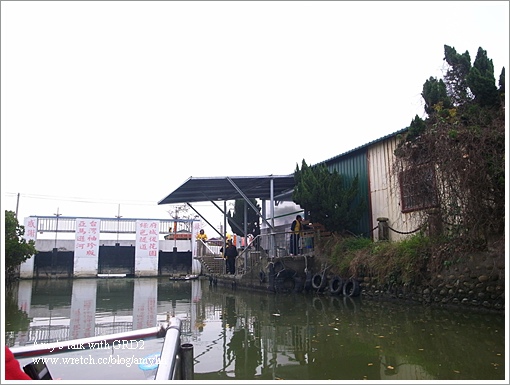 從廟旁小吃攤集結處再往前走,就會來到搭船的碼頭。等候的房屋內掛著多幅紀錄台江歷史的海報。